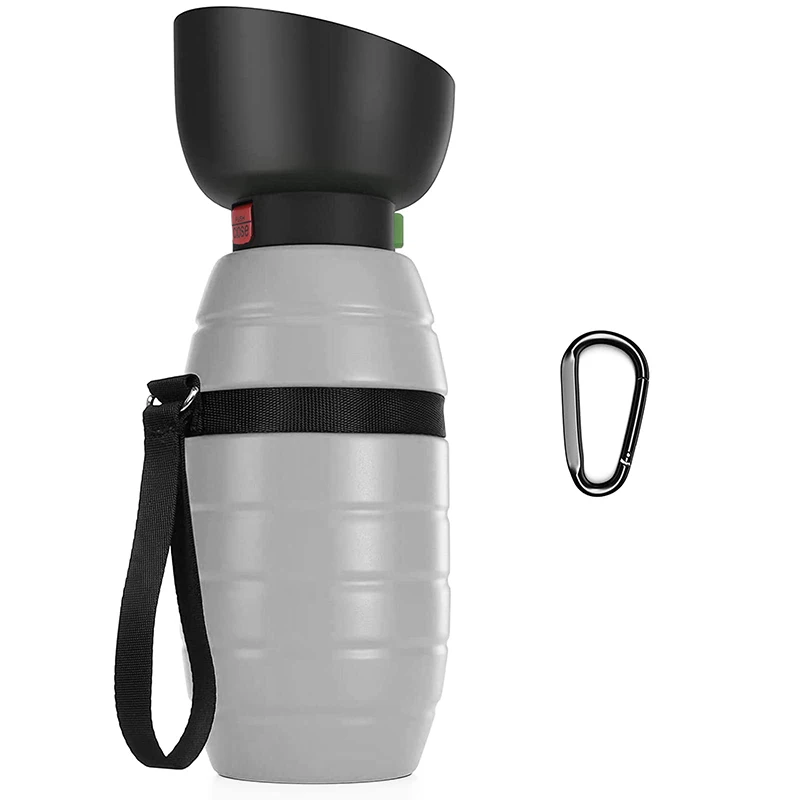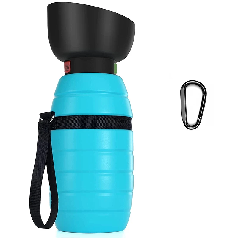 【LIGHTWEIGHT & PORTABLE】: Pecute portable dog water bottle with a built-in double seal design fits into most backpack bottle pockets and won't get your travel bag wet. Equipped with a hand strap, it's easy to carry. It also comes with an extra carabiner that can be attached wherever you need it.