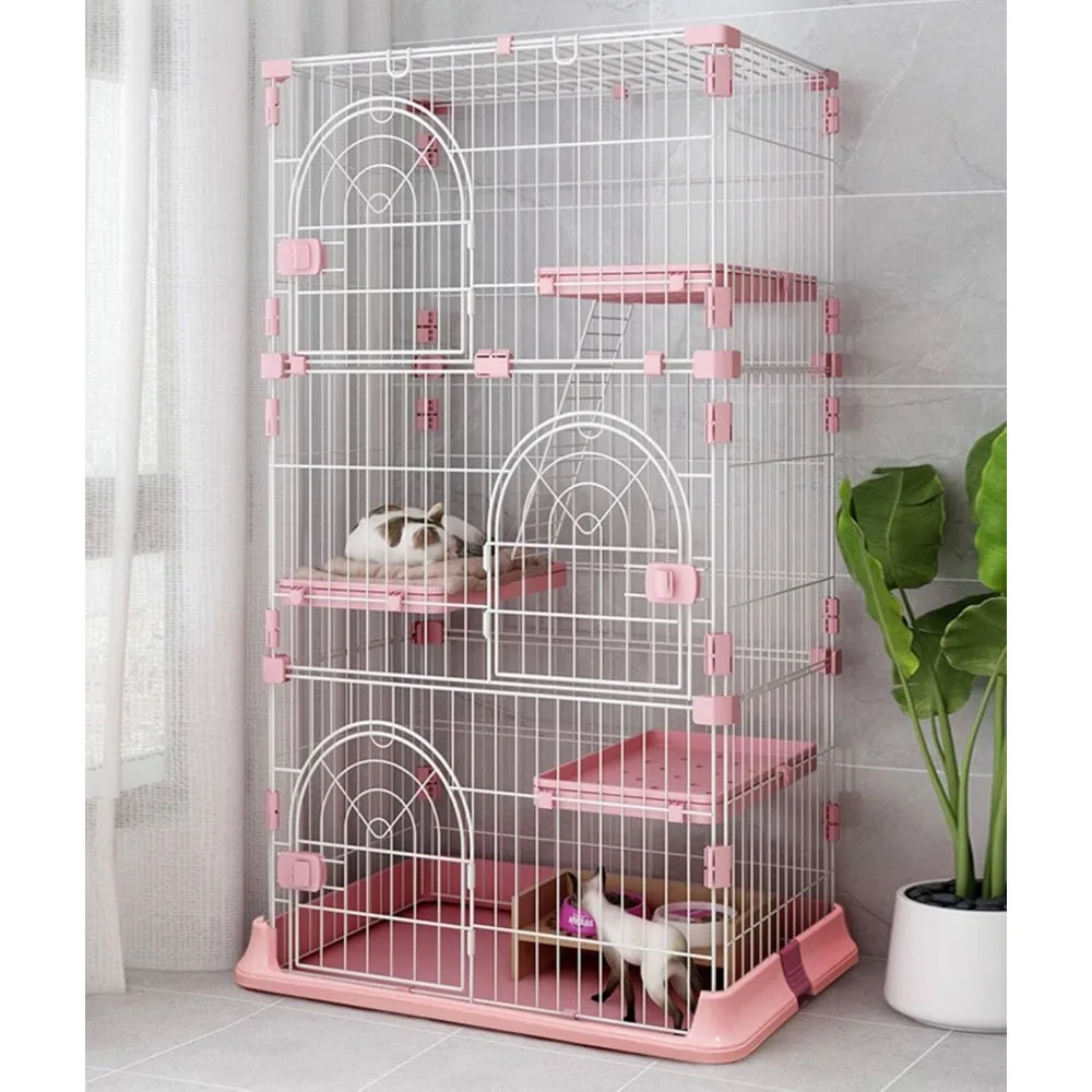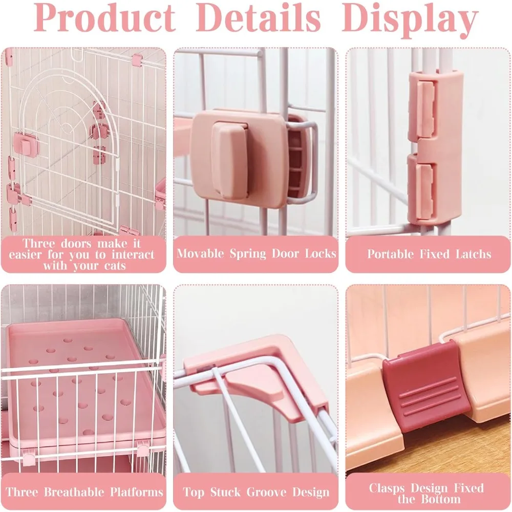 - Convenient and Practical Design: This 4 tiers large cat playpen has 3 openable doors located at the bottom, middle and top of the cat cage indoor, allowing you to clean up litter in the pet cages for cats more conveniently and interact with your cat more easily. The snap on/off switch of the 3 doors is very convenient and labor-saving, which will give you and your cat a pleasant living experience