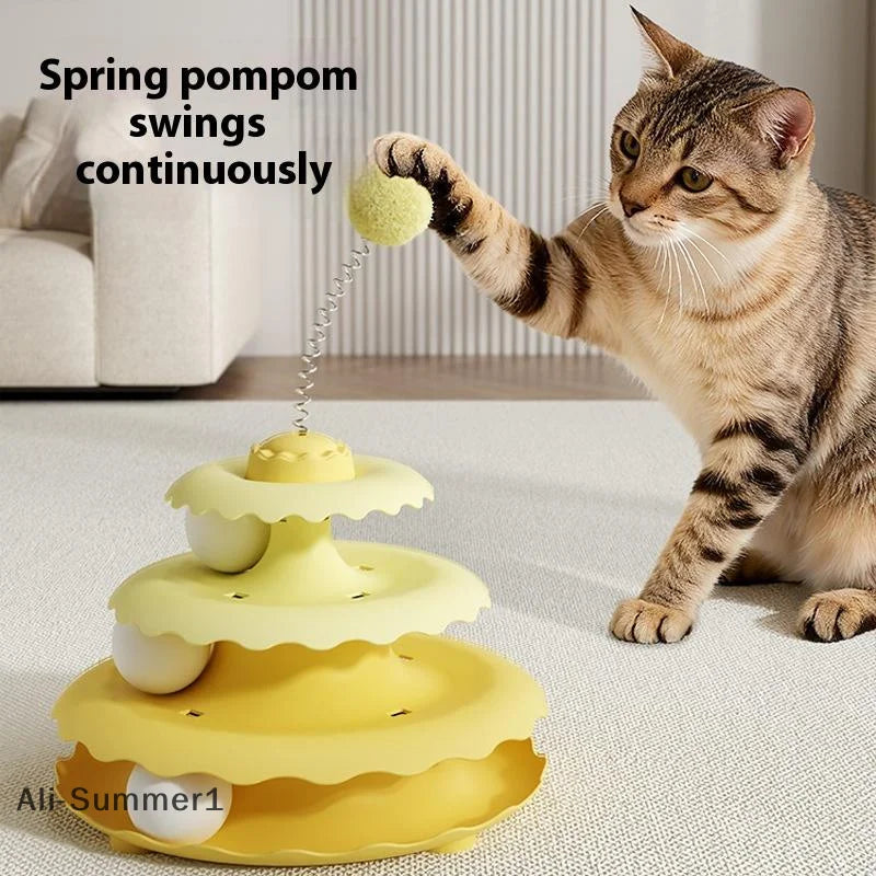 Three Layer Turntable Educational Play Track Tower Cat Teaser Toy Household Cat Practice Self Entertainment Teasing Artifact Toy