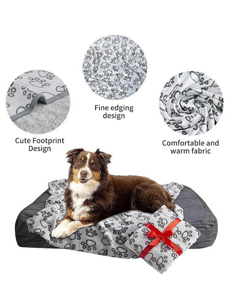 PREMIUM MATERIAL FOR PETS ONLY: Super Soft & Warm comfy fleece for your pets, exclusive cute paw prints design on the top, lovely solid gray color on the back, no fear of peeing, bitting, chewing and tearing. Your dog will love this dog products! A good match for puppy toys.