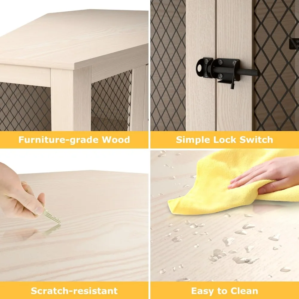 Wooden Dog Crate Furniture: 44-Inch End Table with Mesh for Small to Medium Dogs