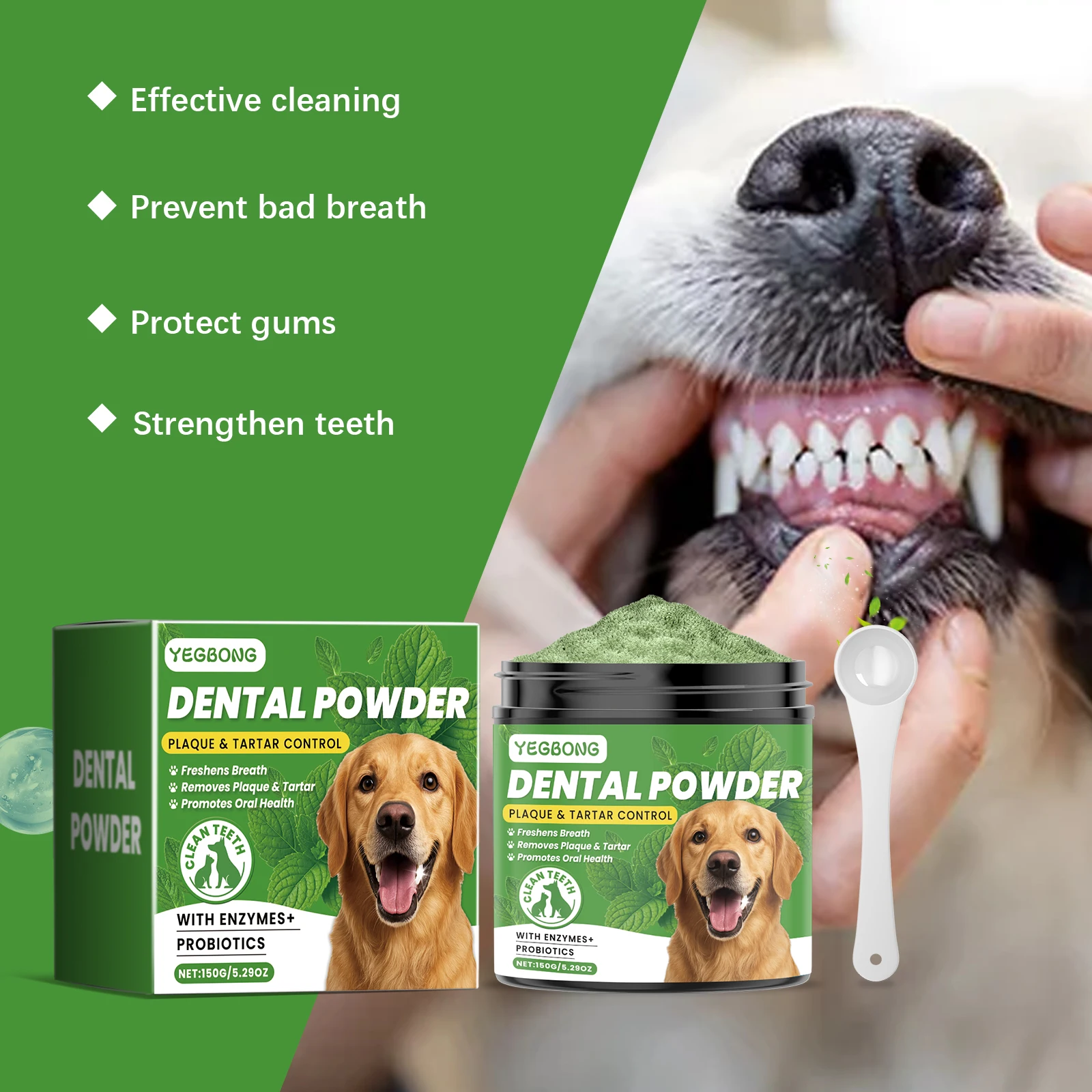 Yegbong 150g Dog Teeth Cleaning Powder - Gentle Dental Care for Pets - Removes Tartar, Stains & Bad Breath - Whitens Teeth